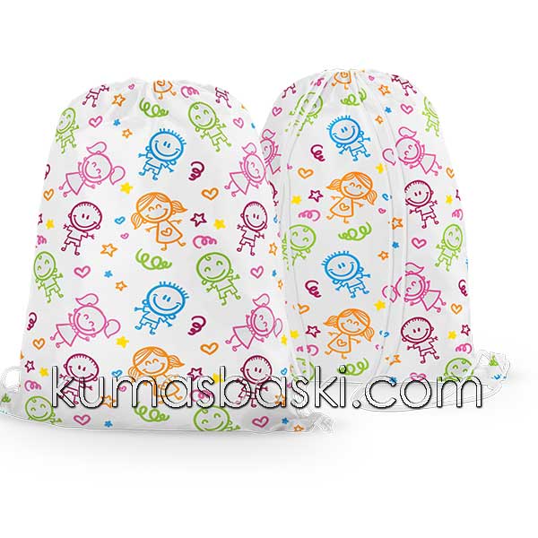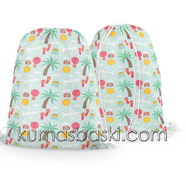 Büzgülü çantalarda kullandığımız baskı, çıkmayan solmayan insan sağlığına zarar vermeyen eko-teks belgeli baskı kullanılmaktadır.